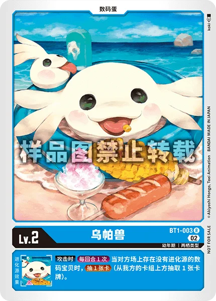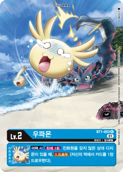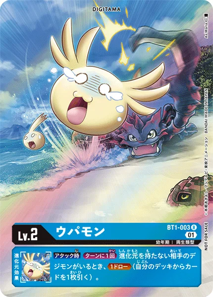 When AttackingOnce Per Turn If your opponent has a Digimon with no digivolution cards in play, trigger Draw 1. (Draw 1 card from your deck.)