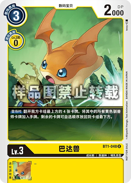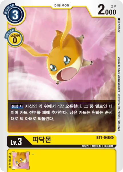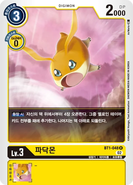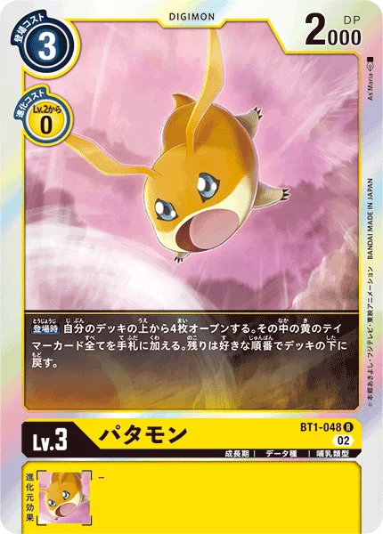 On Play Reveal 4 cards from the top of your deck. Add all yellow Tamer cards among them to your hand. Place the remaining cards at the bottom of your deck in any order.
