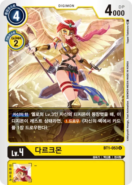 Your Turn When you play a level 3 yellow Digimon, if this Digimon is suspended, trigger Draw 1 (Draw 1 card from your deck).