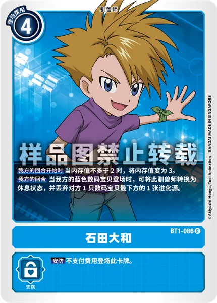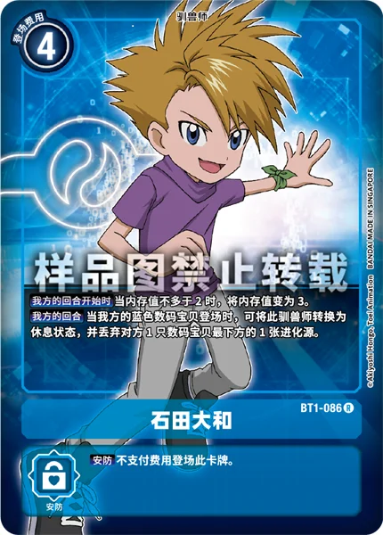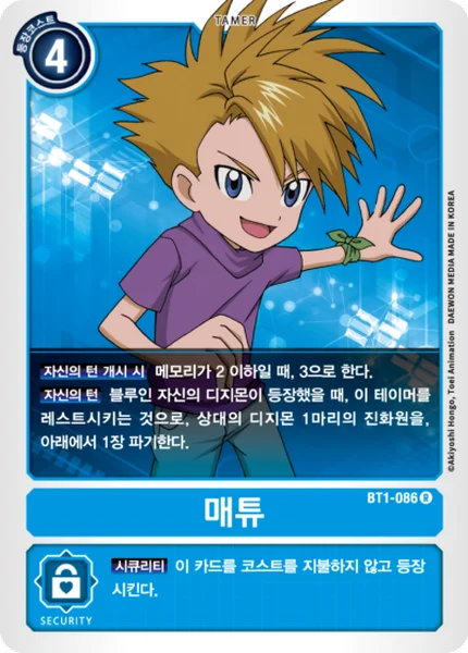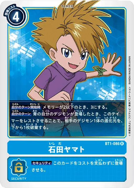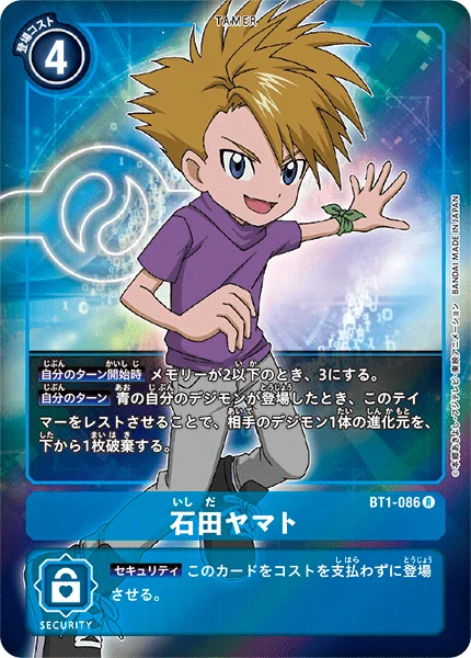 Start of Your Turn If you have 2 or less memory, set your memory to 3.Your Turn When you play a blue Digimon, you can suspend this Tamer to trash the bottom digivolution card of 1 of your opponent's Digimon.