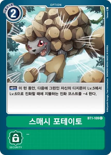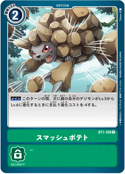 Main For the turn, the next time you would digivolve one of your green Digimon from level 5 to level 6, decrease the digivolution cost by 4.