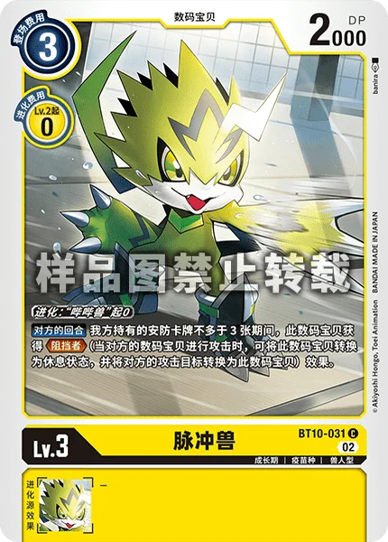 Digivolve 0 from [Bibimon]Opponent's Turn While you have 3 or fewer security cards, this Digimon gains Blocker. (When an opponent's Digimon attacks, you may suspend this Digimon to force the opponent to attack it instead.)