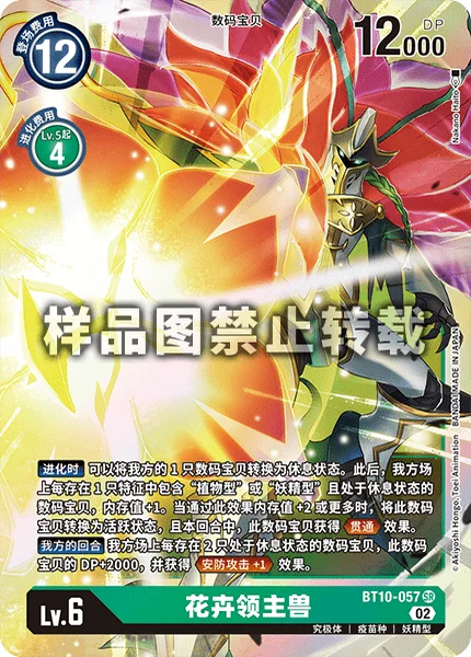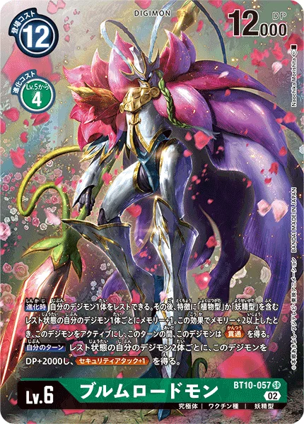 When Digivolving You may suspend 1 of your Digimon. Then, gain 1 memory for each of your suspended Digimon with [Vegetation], [Plant] or [Fairy] in any of their traits. If this effect gains 2 or more memory, this Digimon unsuspends and gains Piercing for the turn.