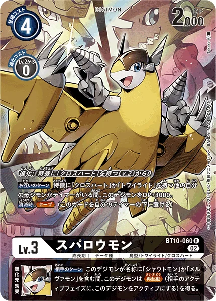 Digivolve 0 from Lv.2 w/[Xros Heart] in traitsAll Turns While you have another Digimon or Tamer with [Xros Heart] or [Twilight] in its traits in play, this Digimon gets +3000 DP.