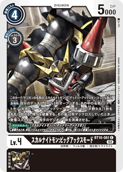 (*This card's "The name of this card/Digimon is also treated as [SkullKnightmon] and [DeadlyAxemon]" has been changed to " ⟨Rule⟩ Name: Also treated as [SkullKnightmon] and [DeadlyAxemon].")Sep. 13, 2024 Updated