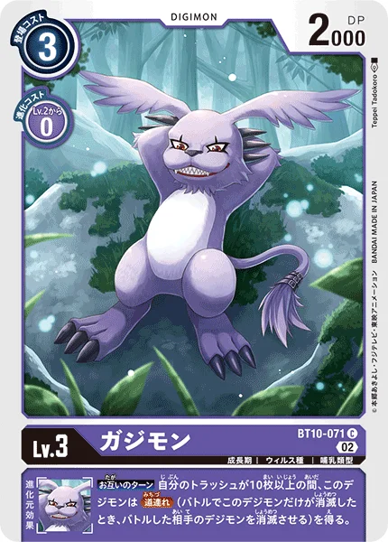 All Turns While there are 10 or more cards in your trash, this Digimon gains Retaliation. (When this Digimon is deleted in battle, delete the Digimon it battled.)