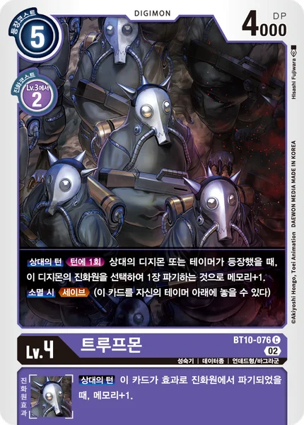 Opponent's TurnOnce Per Turn When an opponent plays a Digimon or Tamer, by trashing 1 of this Digimon's digivolution cards, gain 1 memory.