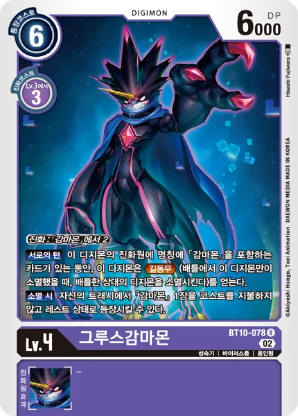 On Deletion You may play 1 [Gammamon] from your trash suspended without paying its memory cost.