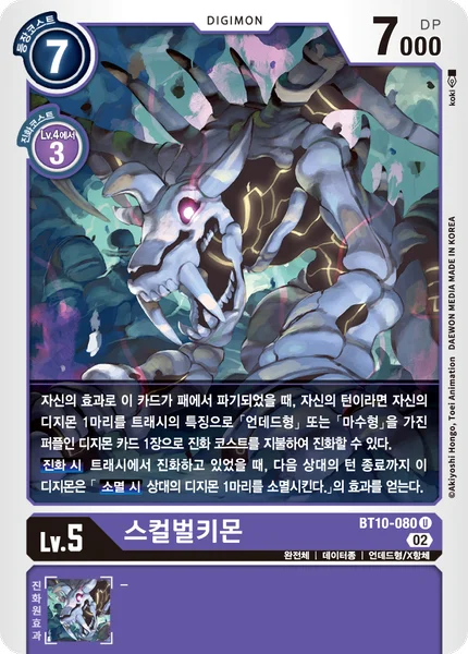 When one of your effects trashes this card in your hand, if it's your turn, 1 of your Digimon may digivolve into 1 purple Digimon card with [Undead] or [Dark Animal] in its traits from your trash for its digivolution cost.