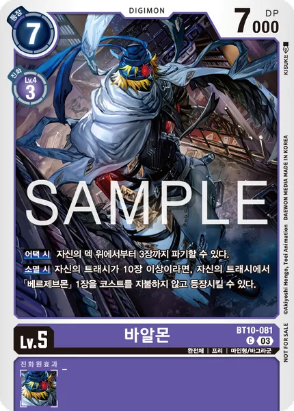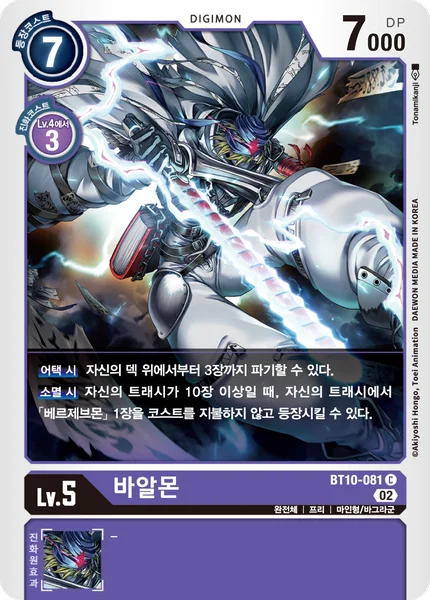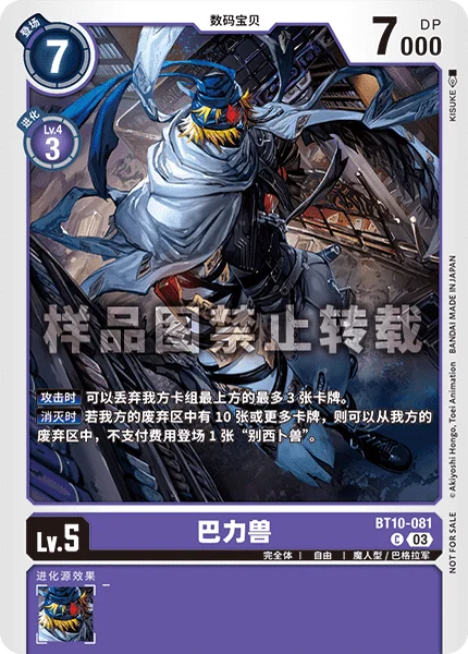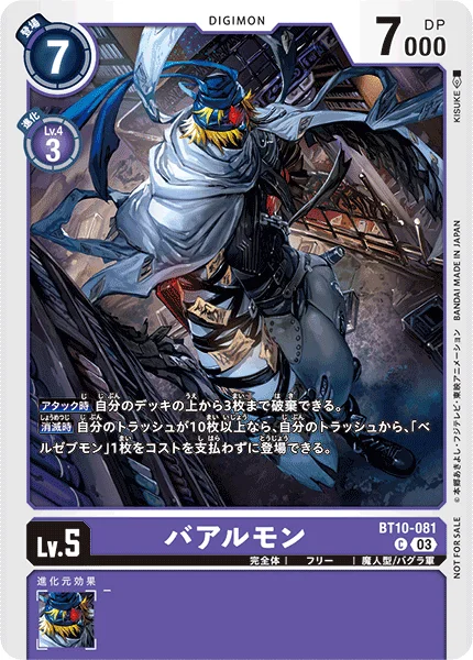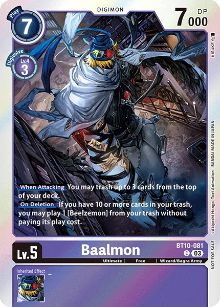 On Deletion If you have 10 or more cards in your trash, you may play 1 [Beelzemon] from your trash without paying its memory cost.