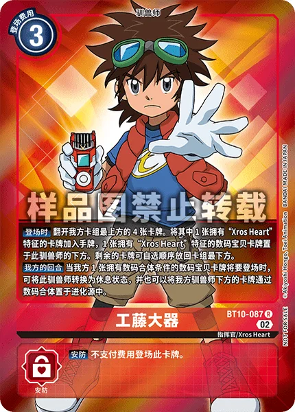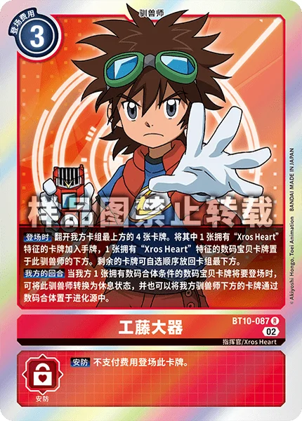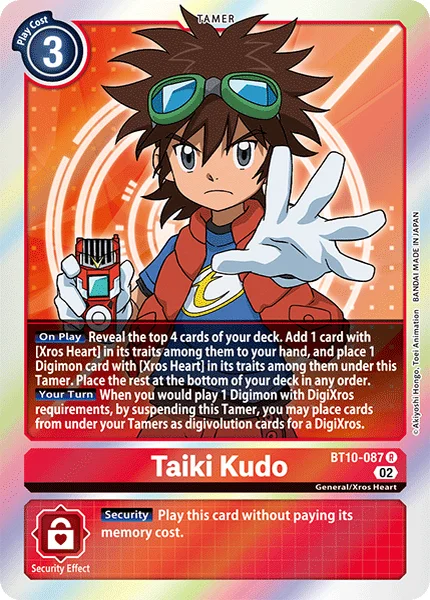 On Play Reveal the top 4 cards of your deck. Among them, add 1 card with the [Xros Heart] trait to the hand and place 1 such Digimon card under this Tamer. Return the rest to the bottom of the deck.