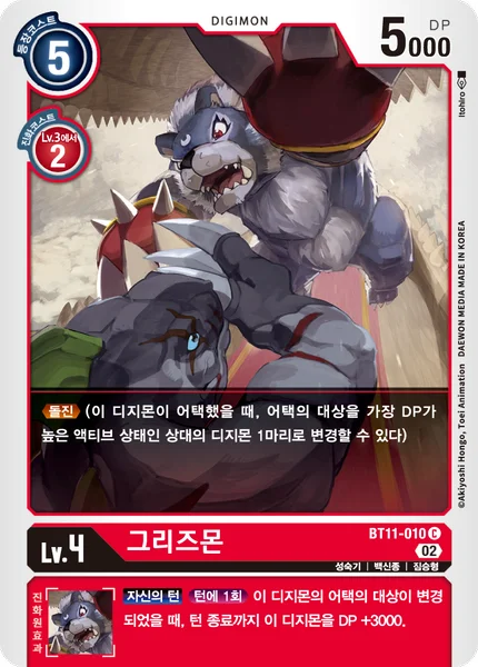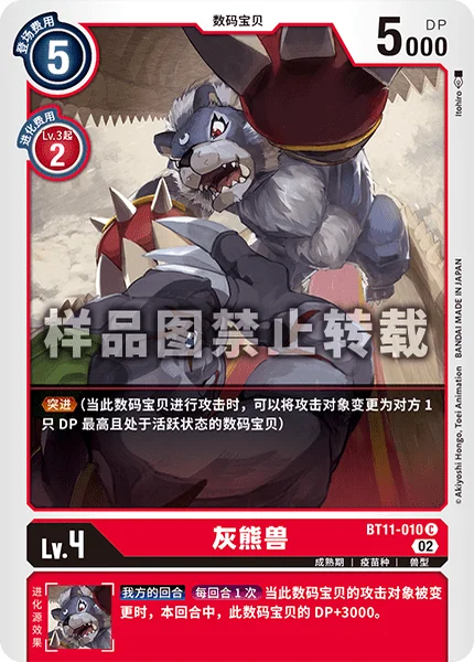 Raid (When this Digimon attacks, you may switch the target of attack to 1 of your opponent's unsuspended Digimon with the highest DP.)