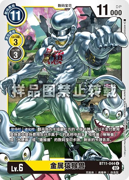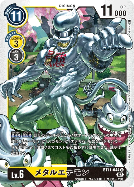 On PlayWhen Digivolving Reveal the top 4 cards of your deck. You may play any number of Digimon cards with [Chuumon], [Sukamon], or [Etemon] in their names whose total play costs add up to 7 or less among them without paying the costs. Trash the rest.