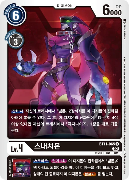 All TurnsOnce Per Turn When [Vemmon] is placed from this Digimon's digivolution cards at the bottom of its owner's deck, unsuspend this Digimon, and it gains Blocker until the end of your opponent's turn.