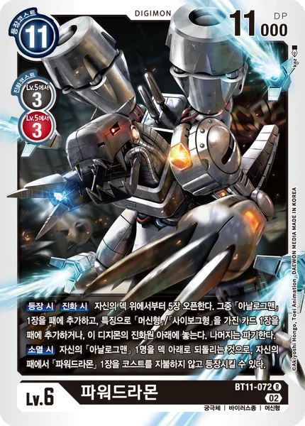 When DigivolvingOn Play Reveal the top 5 cards of your deck. Add 1 [Analogman] among them to your hand, and add 1 card with [Cyborg] or [Machine] in its traits to your hand or place it under this Digimon as its bottom digivolution card. Trash the rest.On Deletion By placing 1 of your [Analogman]s in play at the bottom of its owner's deck, you may play 1 [Machinedramon] from your hand without paying the cost.