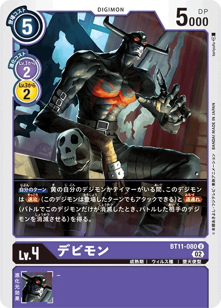 Your Turn While you have a yellow Digimon or yellow Tamer in play, this Digimon gains Rush (This Digimon may attack the turn it was played) and Retaliation. (When this Digimon is deleted in battle, delete the Digimon it battled.)