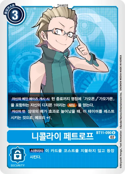 Start of Your Main Phase 1 of your Digimon with [Gaomon] or [Gaogamon] in its name gains Jamming for the turn.Your Turn When an effect adds cards to your opponent's hand, by suspending this Tamer, gain 1 memory.