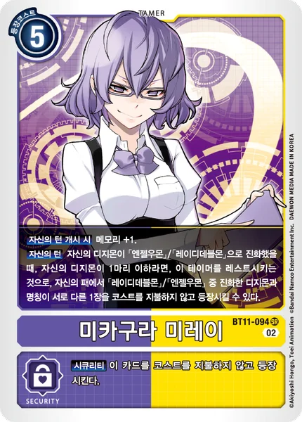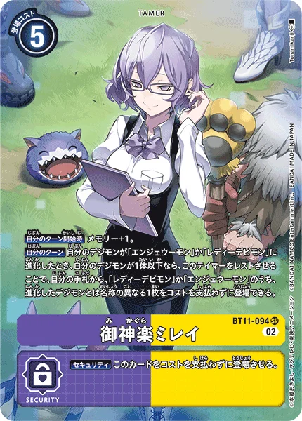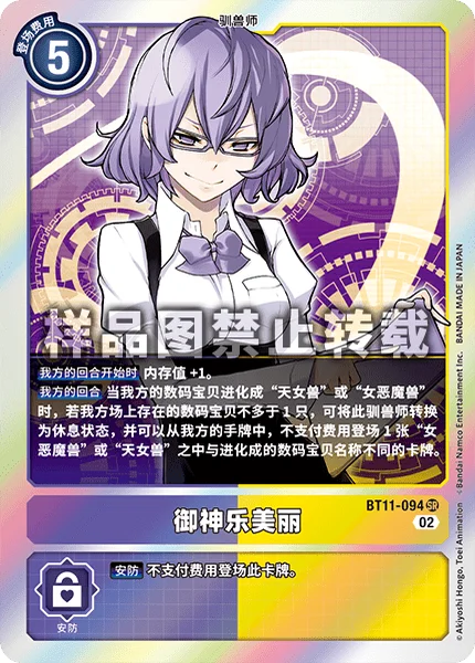 Start of Your Turn Gain 1 memory.Your Turn When one of your Digimon digivolves into [Angewomon] or [LadyDevimon], if you have 1 or fewer Digimon in play, by suspending this Tamer, you may play 1 [Angewomon] or [LadyDevimon] with a different name than the Digimon you digivolved into from your hand without paying the cost.