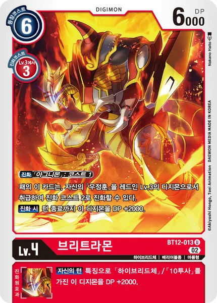 Digivolve 1 from [Agunimon] You may digivolve this card from your hand onto one of your [Takuya Kanbara] cards as if the Tamer is a level 3 red Digimon for a digivolution cost of 2.When Digivolving This Digimon gets +2000 DP for the turn.
