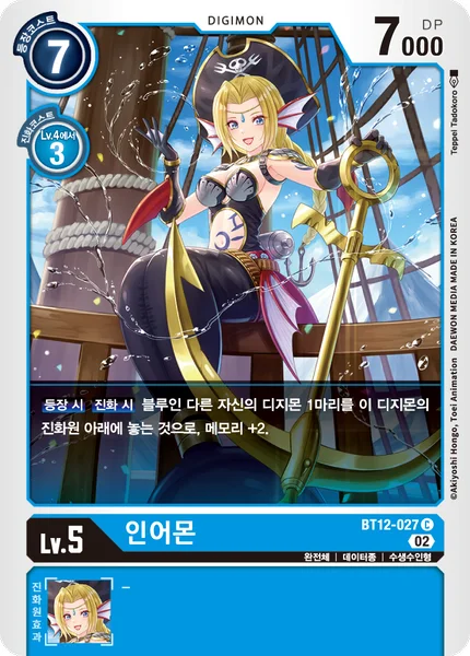 On PlayWhen Digivolving By placing another blue Digimon under this Digimon as its bottom digivolution card, gain 2 memory.