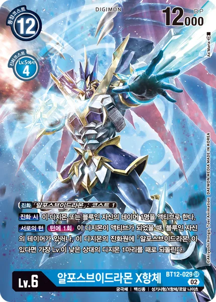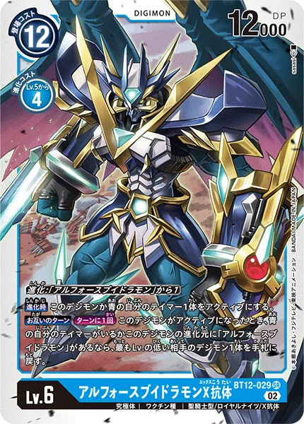 Digivolve 1 from [UlforceVeedramon]When Digivolving Unsuspend this Digimon or 1 of your blue Tamers.All TurnsOnce Per Turn If this Digimon becomes unsuspended, if you have a blue Tamer in play or this Digimon has [UlforceVeedramon] in its digivolution cards, return 1 of your opponent's Digimon with the lowest level to its owner's hand.