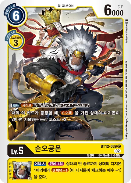 Digivolve 3 from Lv.4 w/Save in text When you would play this card from your hand, if your opponent has a Digimon with Security Attack in play, reduce its play cost by 3.