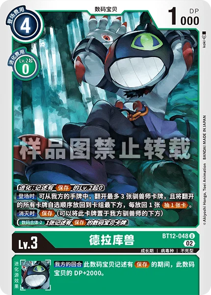 Digivolve 0 from Lv.2 w/Save in text DigiXros -2 1 Digimon card w/Save in text On Play By revealing up to 3 Tamer cards from your hand and placing all of the revealed cards at the bottom of your deck in any order, Draw 1 for each card placed.On Deletion Save (You may place this card under one of your Tamers.)