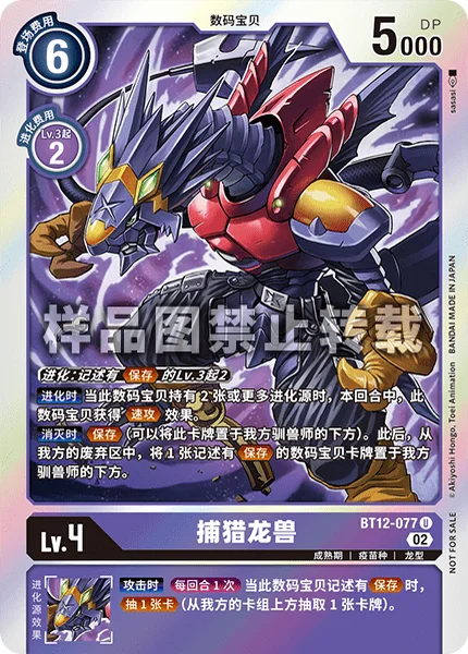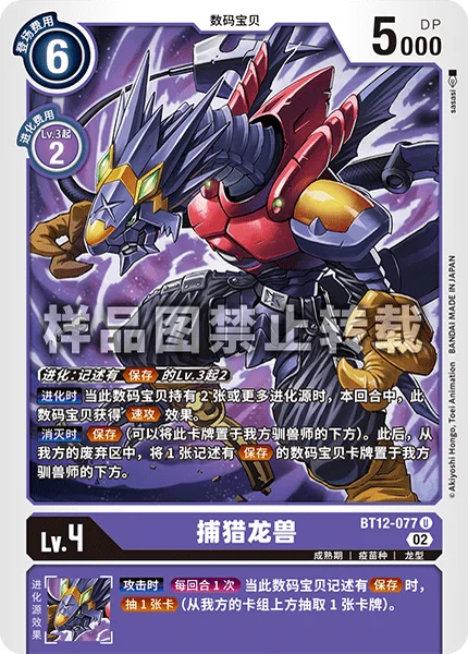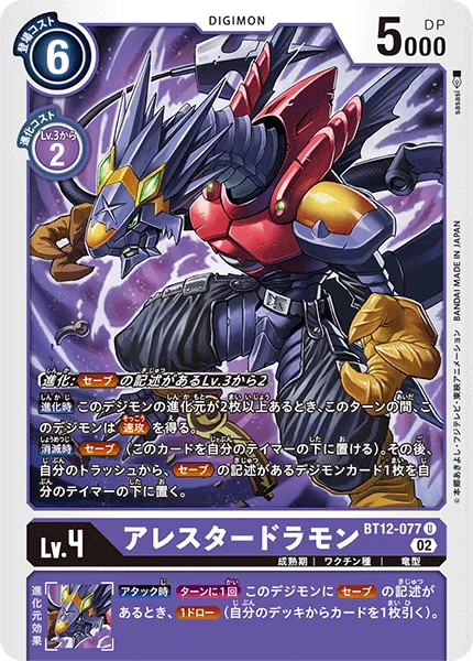 Digivolve 2 from Lv.3 w/Save in text When Digivolving If there are 2 or more digivolution cards under this Digimon, this Digimon gains Rush for the turn.On Deletion Save (You may place this card under one of your Tamers.) Then, place 1 Digimon card with Save in its text from your trash under 1 of your Tamers.
