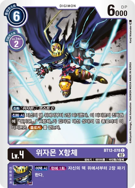 Digivolve 0 from [Wizardmon]When Digivolving Trash the top 2 cards of your deck. If [Wizardmon] or [X Antibody] is in this Digimon's digivolution cards, it gains Blocker until the end of your opponent's turn instead.