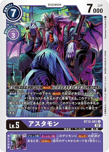 Digivolve 5 from [Psychemon]/3 from yellow, green, or purple Lv.4 w/Save in text When Digivolving You may play 1 level 4 or lower Digimon card with Save from under one of your Tamers without paying its cost. If there are 4 or more digivolution cards under this Digimon, it can be digivolved into a [Quartzmon] in your hand or under one of your Tamers with the digivolution cost reduced by 3 instead.