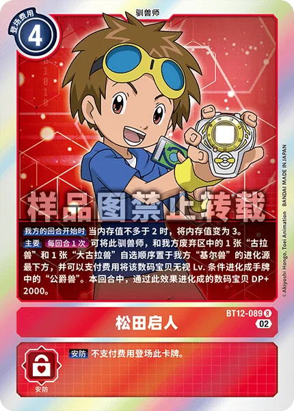 MainOnce Per Turn By placing this Tamer and 1 [Growlmon] and 1 [WarGrowlmon] from your trash in any order as the bottom digivolution cards of one of your [Guilmon], that Digimon may digivolve into [Gallantmon] in your hand for the cost, ignoring its level. The Digimon that digivolved by this effect gets +2000 DP for the turn.