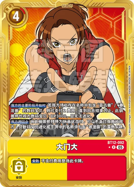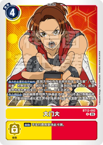 Start of Your Main Phase If you have a Digimon with [Agumon] or [Greymon] in its name, by paying 1 memory, for the turn, this Tamer is also treated as a 3000 DP Digimon and can't digivolve.