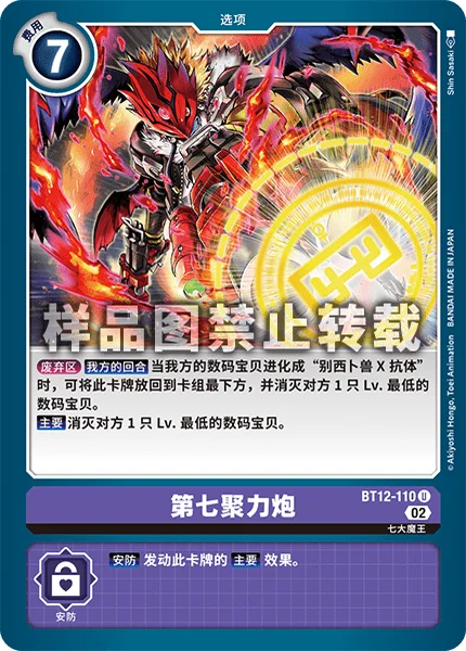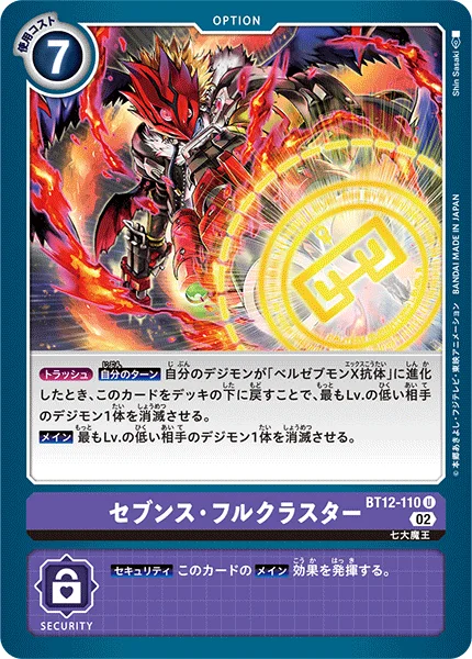 TrashYour Turn If one of your Digimon digivolves into [Beelzemon (X Antibody)], by returning this card to the bottom of your deck, delete 1 of your opponent's Digimon with the lowest level.Main Delete 1 of your opponent's Digimon with the lowest level.