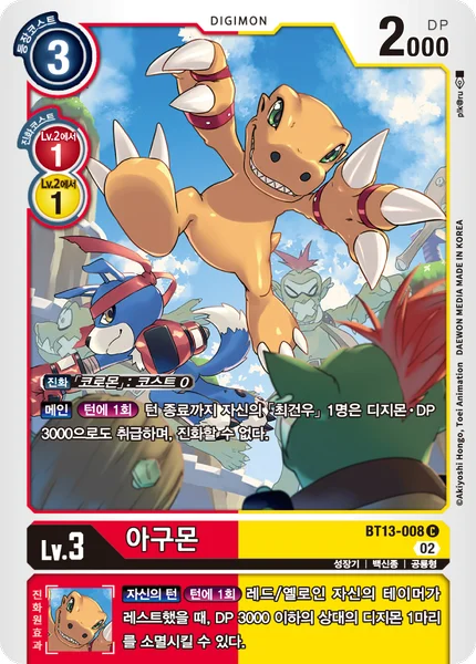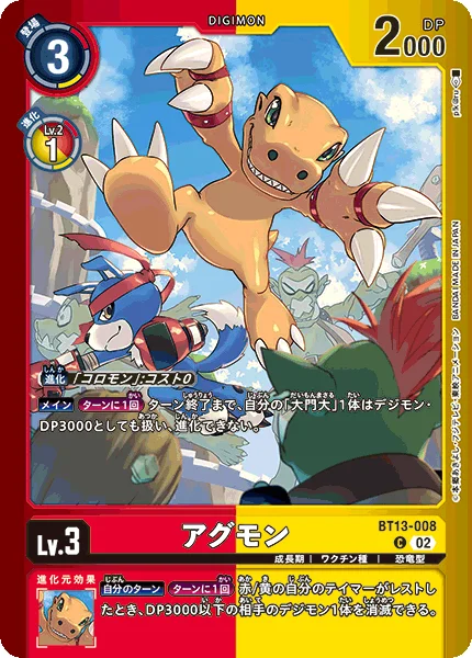 Your TurnOnce Per Turn When one of your red or yellow Tamers becomes suspended, you may delete 1 of your opponent's Digimon with 3000 DP or less.