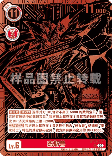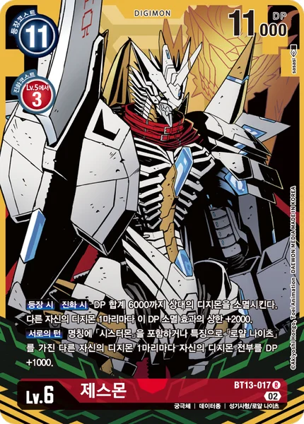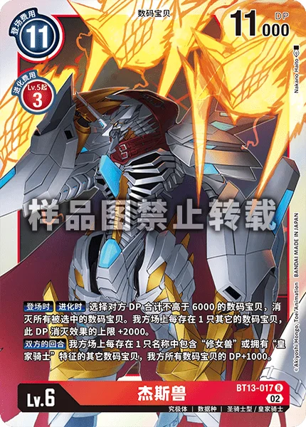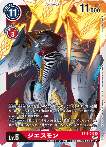On PlayWhen Digivolving Choose any number of your opponent's Digimon so that their DP total is up to 6000 and delete them. For each of your other Digimon, add 2000 to the maximum this DP-based deletion effect can delete.