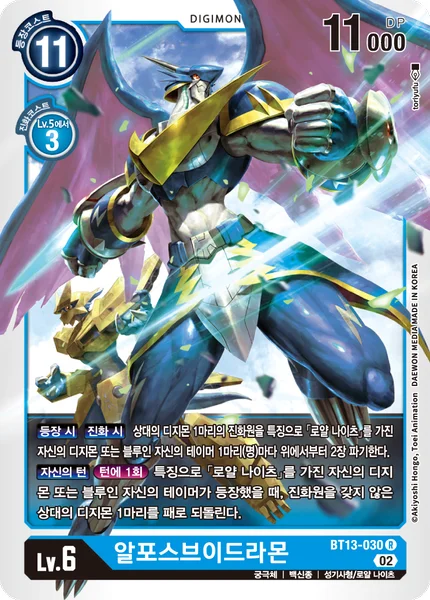 On PlayWhen Digivolving For each of your Digimon with the [Royal Knight] trait and each of your blue Tamers, trash the top 2 digivolution cards of 1 of your opponent's Digimon.