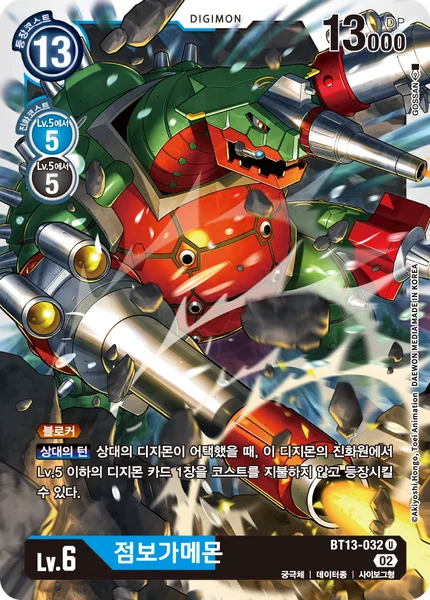 Opponent's Turn When an opponent's Digimon attacks, you may play 1 level 5 or lower Digimon card from this Digimon's digivolution cards without paying the cost.