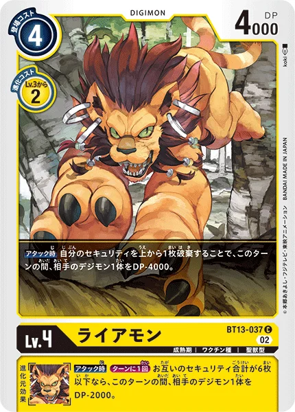 When Attacking By trashing the top card of your security stack, 1 of your opponent's Digimon gets -4000 DP for the turn.