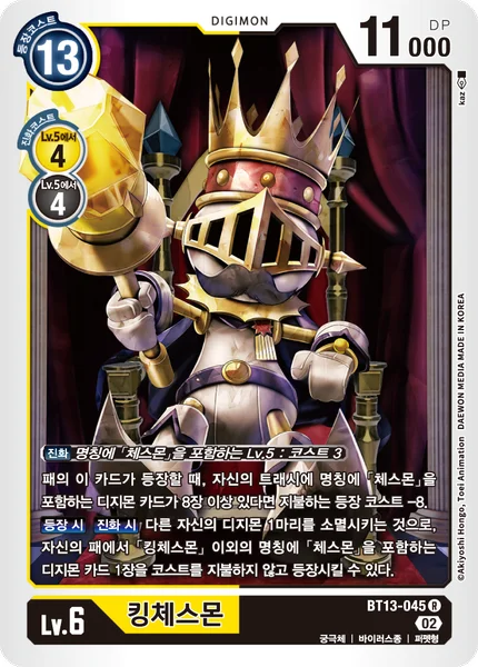 On PlayWhen Digivolving By deleting 1 of your other Digimon, you may play 1 Digimon card with [Chessmon] in its name, other than [KingChessmon], from your hand without paying the cost.