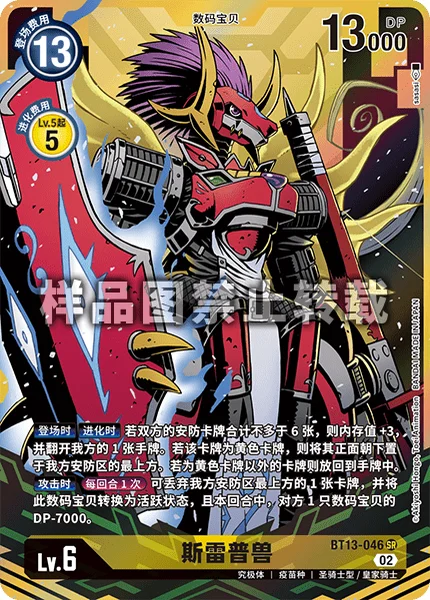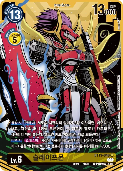On PlayWhen Digivolving If there're 6 or fewer total cards in both players' security stacks, gain 3 memory, and reveal 1 card in your hand. If it's yellow, place it on top of your security stack face down. If it's not, return it to the hand.