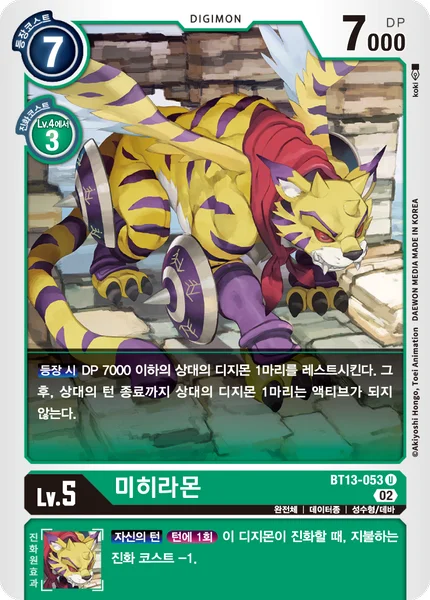 On Play Suspend 1 of your opponent's Digimon with 7000 DP or less. Then, until the end of your opponent's turn, 1 of your opponent's Digimon doesn't unsuspend.