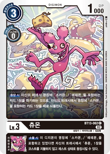 On Deletion If this Digimon had [Sukamon] or [Etemon] in its name, you may play 1 [Chuumon] from your trash suspended without paying the cost.
