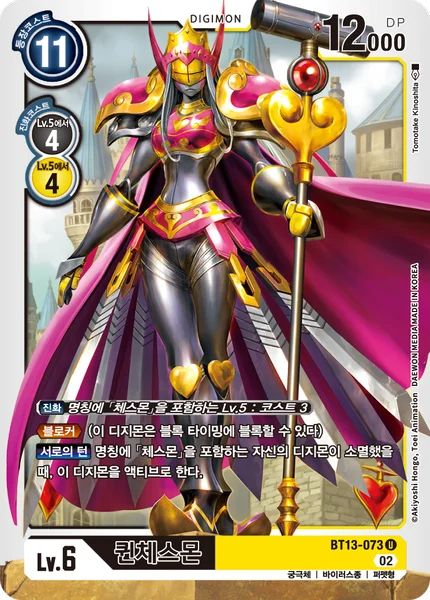 All Turns When one of your Digimon with [Chessmon] in its name is deleted, unsuspend this Digimon.