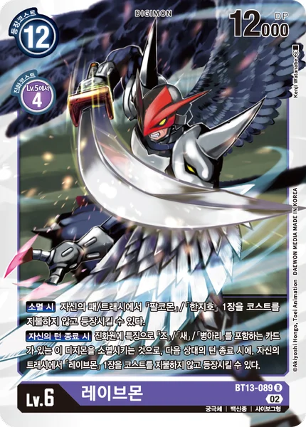 End of Your Turn By deleting this Digimon that has a digivolution card with [Bird] or [Avian] in one of its traits, at the next end of your opponent's turn, you may play 1 [Ravemon] from your trash without paying the cost.