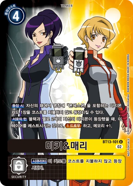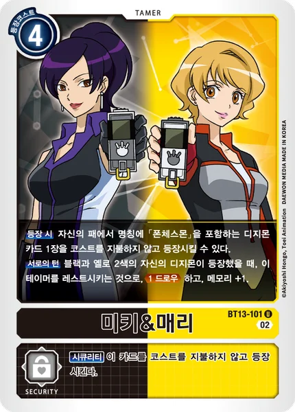 All Turns When you play a 2-color black and yellow Digimon, by suspending this Tamer, Draw 1 and gain 1 memory.