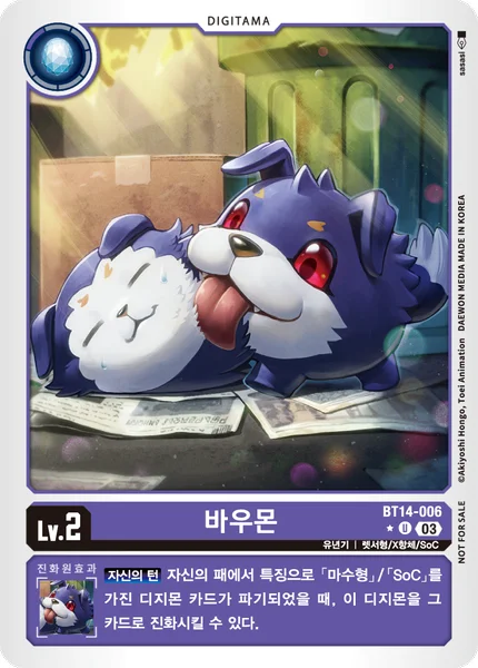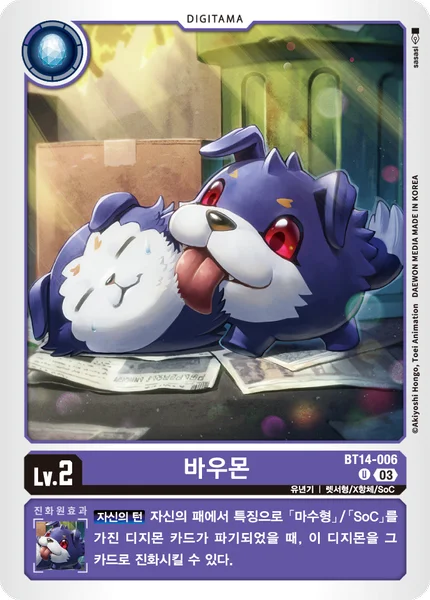 Your Turn When a Digimon card with the [Dark Animal] or [SoC] trait is trashed from your hand, this Digimon may digivolve into that card.