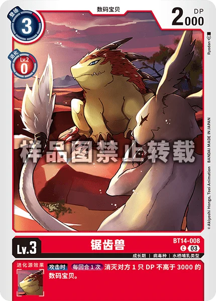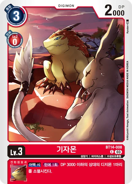 When AttackingOnce Per Turn Delete 1 of your opponent's Digimon with 3000 DP or less.