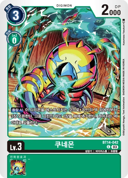 On Play By suspending this Digimon, reveal the top 3 cards of your deck. Add 1 green card among them to the hand. Return the rest to the bottom of the deck.