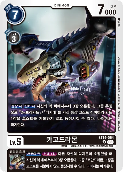 All TurnsOnce Per Turn When one of your other Digimon is deleted, reveal the top 3 cards of your deck. You may play 1 [Commandramon] among them without paying the cost. Trash the rest.