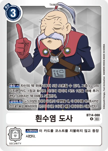On Play You may reveal the top 5 cards of your deck. Add 1 level 3 Digimon card and 1 non-white Tamer card among them to the hand. Return the rest to the bottom of the deck.